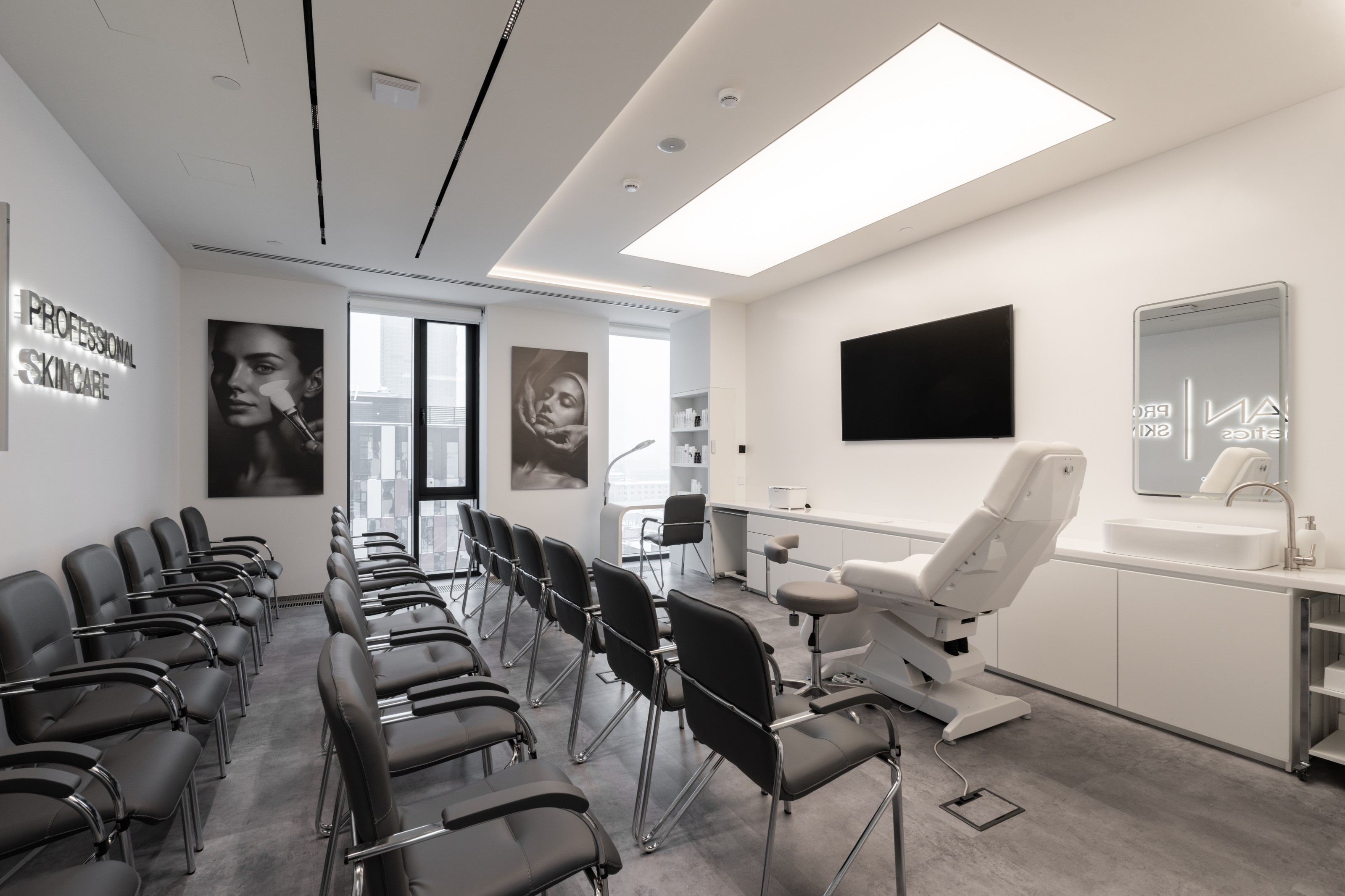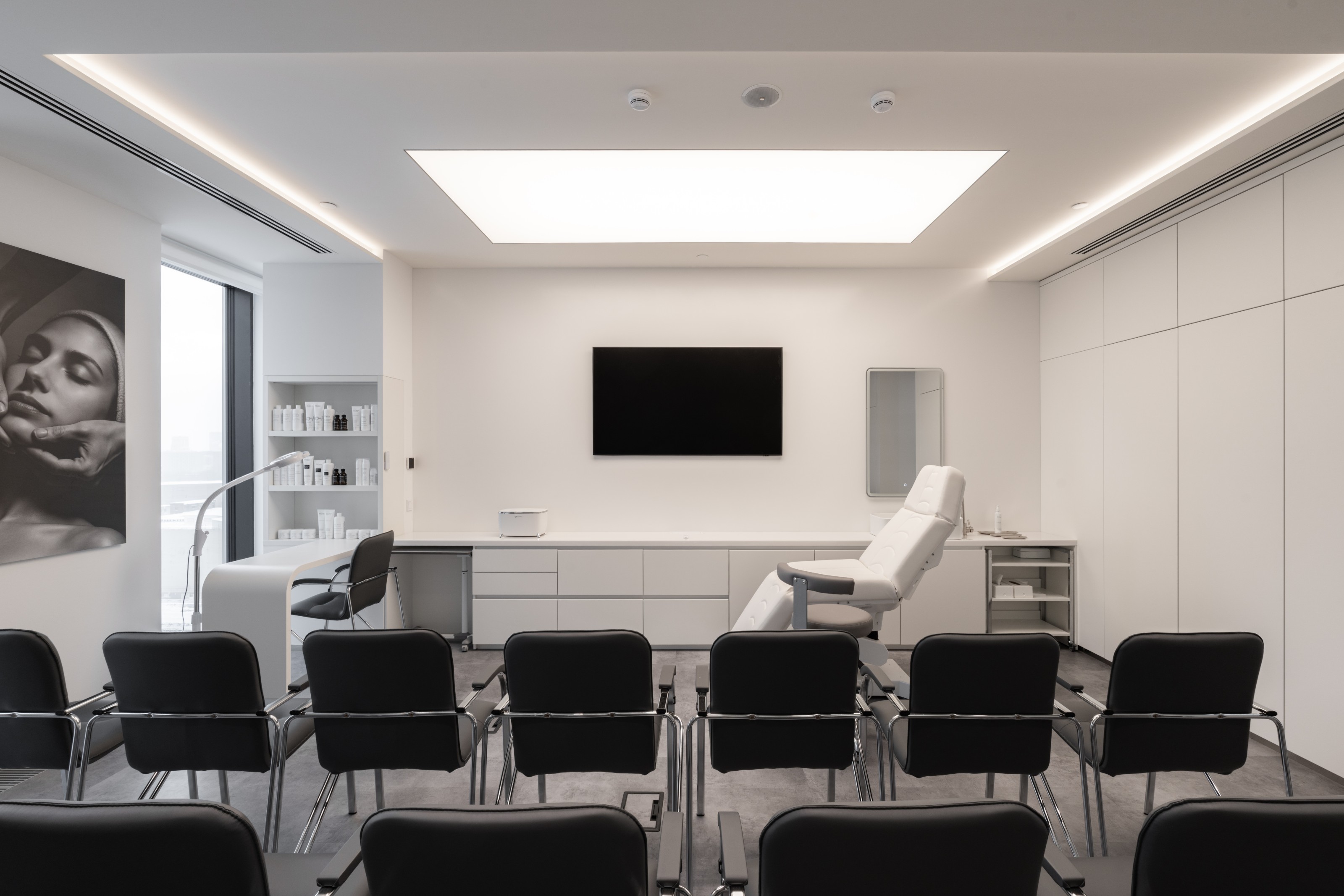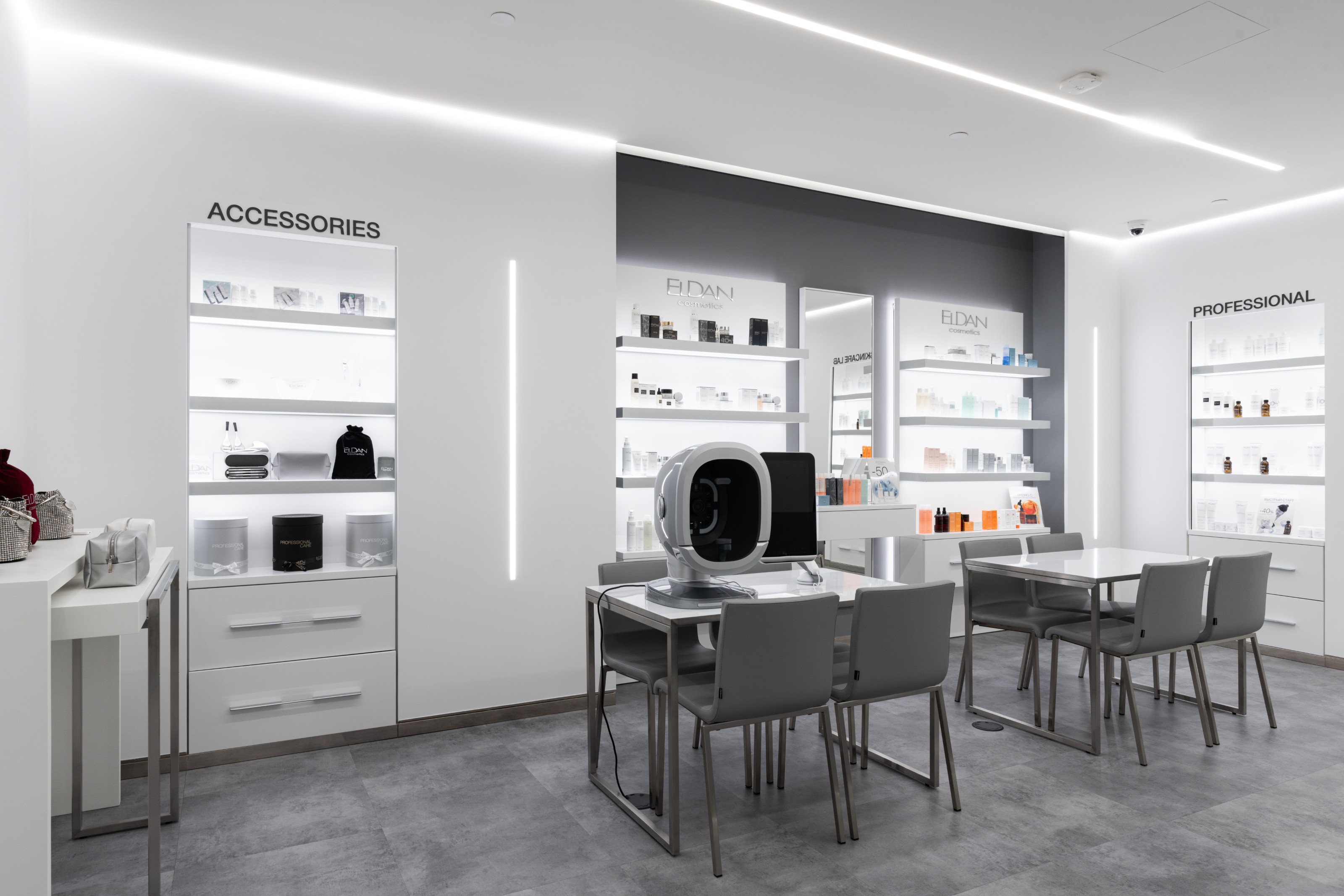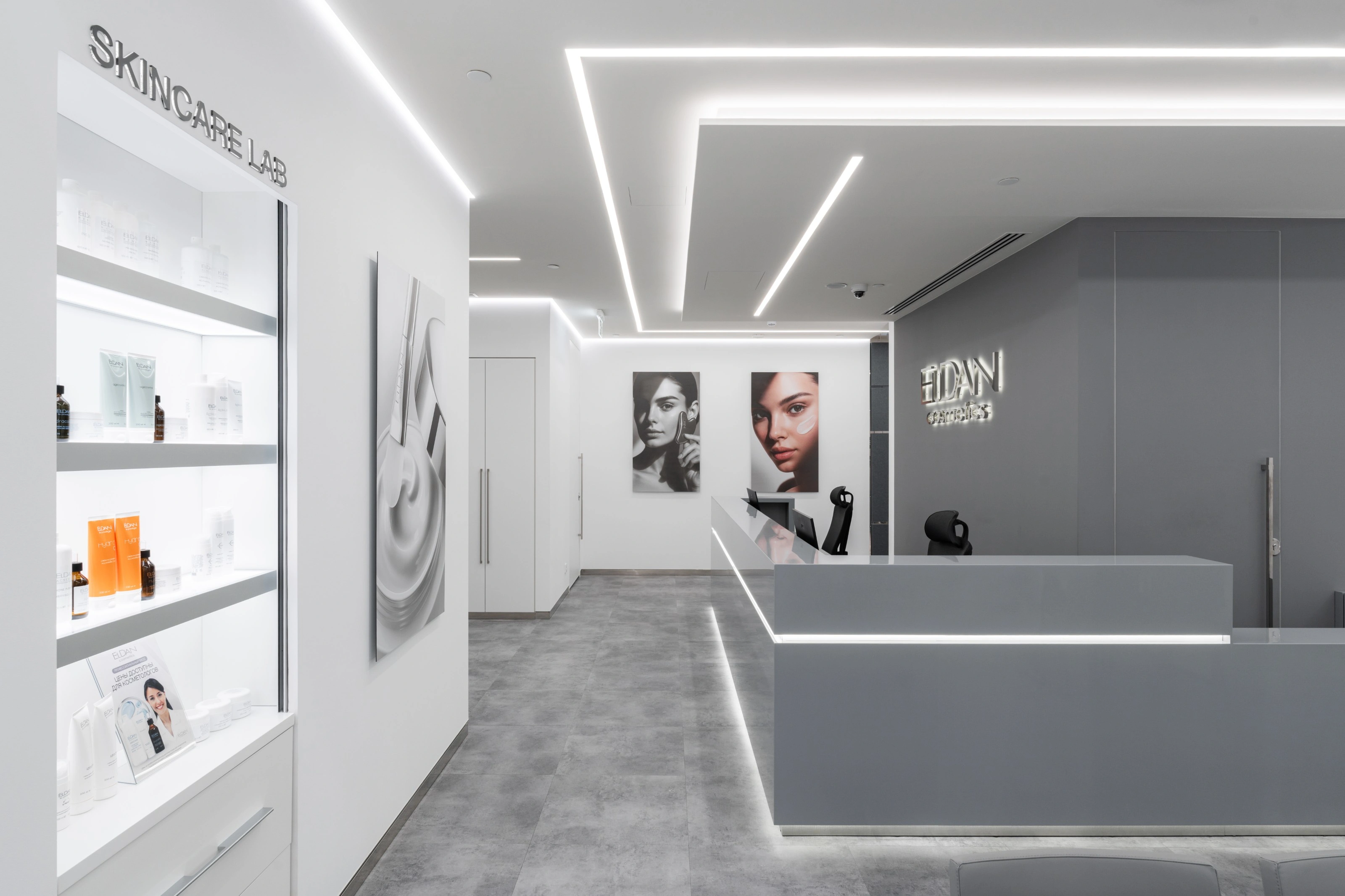Ключевая идея проекта задана самим брендом: в основе лежит тема профессиональной чистоты и аккуратности, которую мы перевели в планировочные и визуальные решения без использования прямых декоративных цитат.