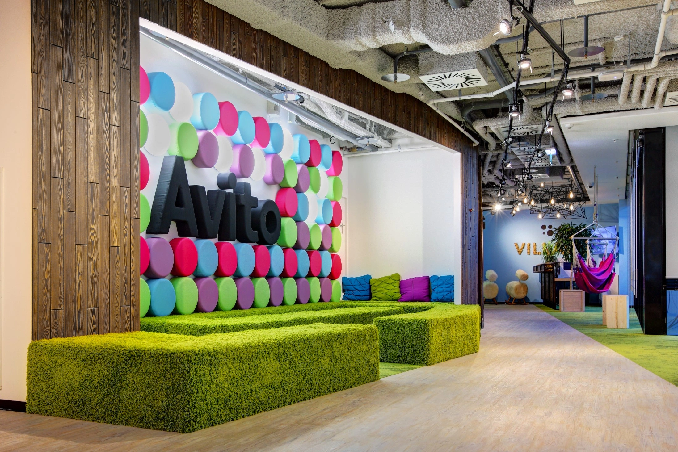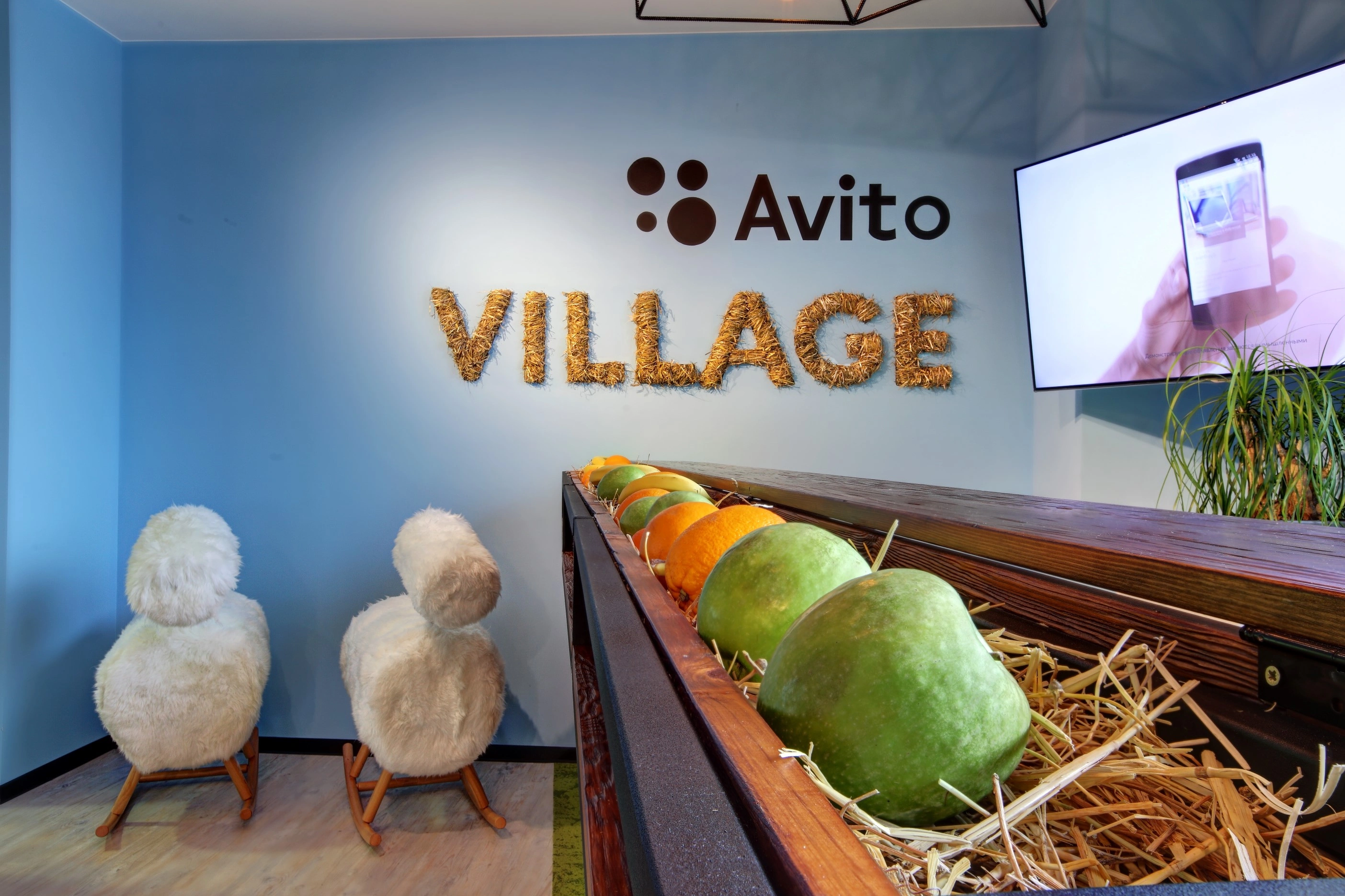 «Меандр» предложили концепцию офиса под названием Avito Village, представляющую офис как загородную резиденция компании Авито. Этот девиз определил образное выражение всех помещений и объектов. В деревне есть главная улица-коридор с деревянным настилом, и дома-помещения, разбросанные вдоль нее. С обеих сторон от улицы на травяном ковролине отдельными группами расположены «жители» деревни - открытое рабочее пространство офиса. Между собой рабочие группы соединены переходными зонами. По офису разбросаны острова зеленой травы, зоны неформального общения, отдыха, игровые. Каждая зона имеет свой тип освещения, свою атмосферу, что создает разносценарность взаимодействий сотрудников в офисе.