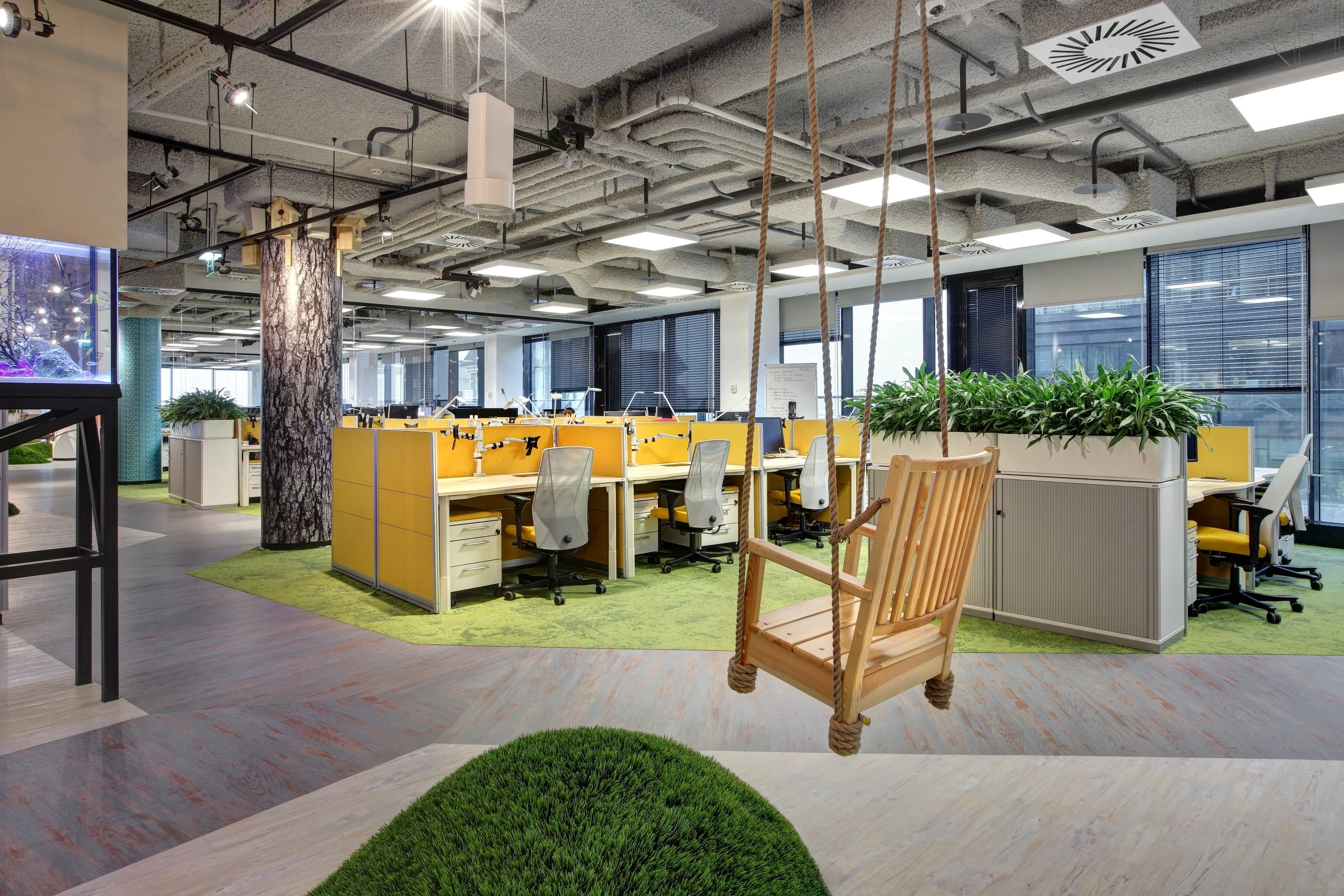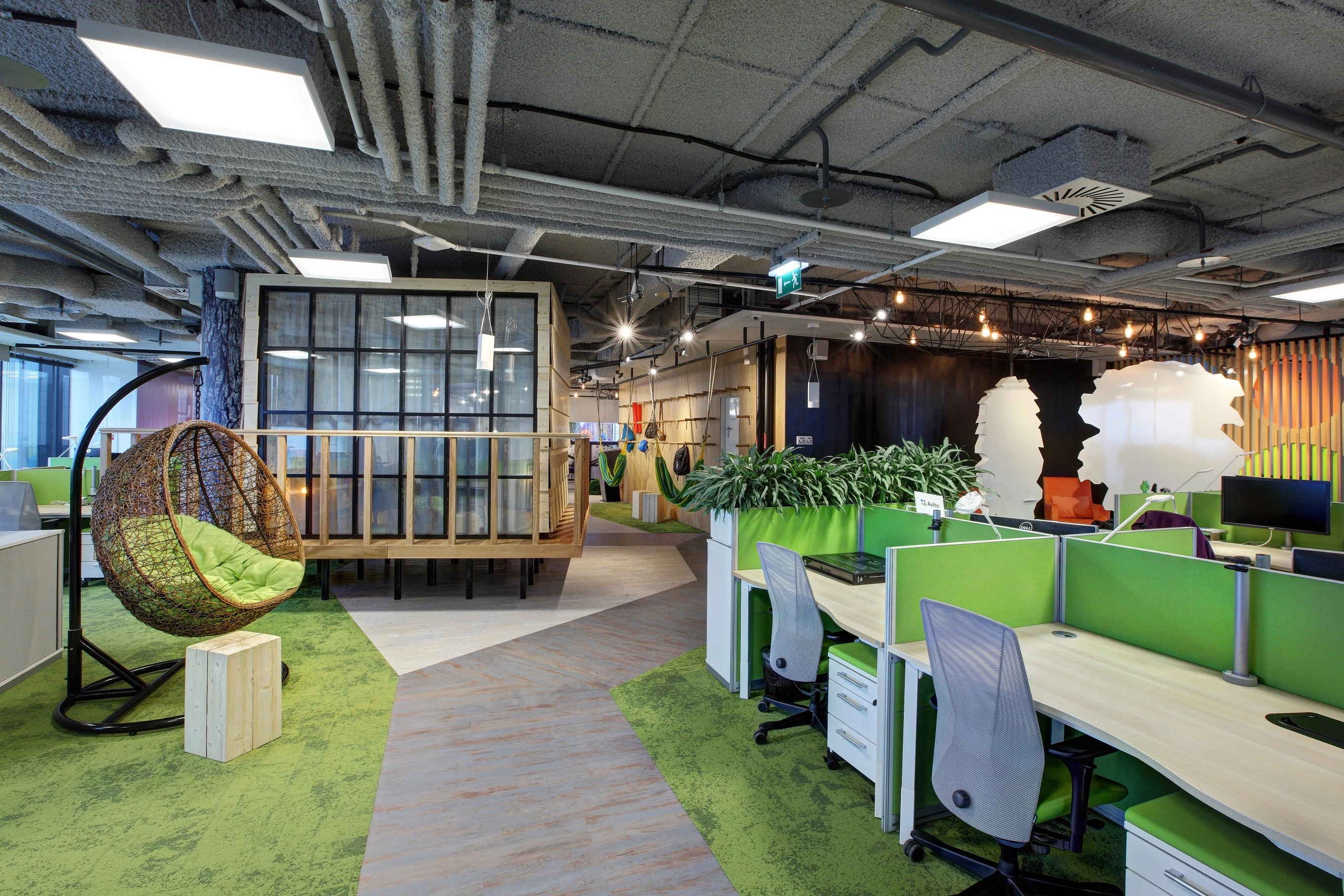 В новом офисе расположился коллектив специалистов, у которого нет жесткой иерархической системы, что было выражено в задании на разработку концепции офисного пространства. Заказчиком была поставлена задача создать уникальный, но комфортный офис с открытой планировкой и близостью к природе.
