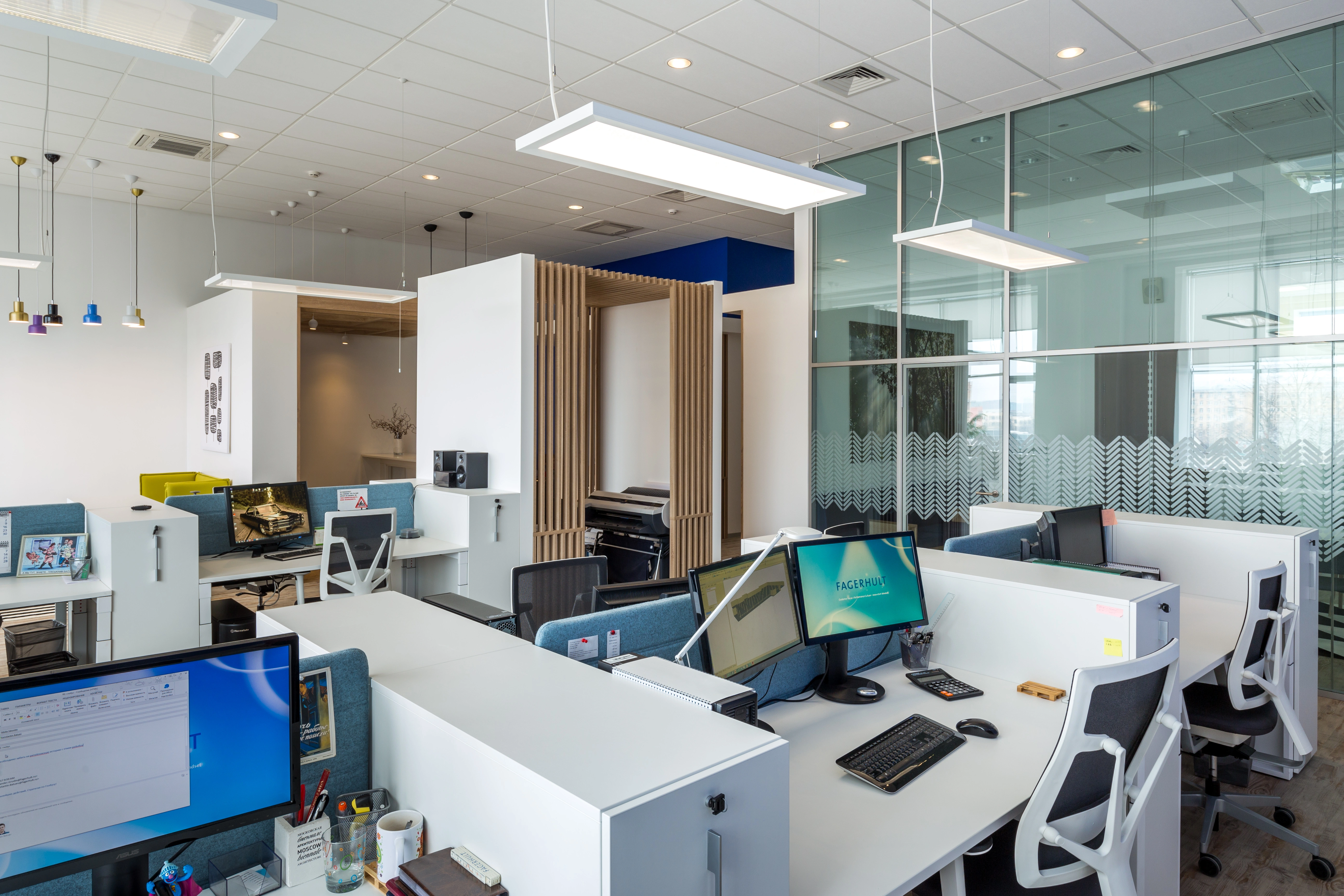 Офис одновременно является шоу-румом, в котором представлены светильники компании и передовые технологии в области освещения и управления освещением.