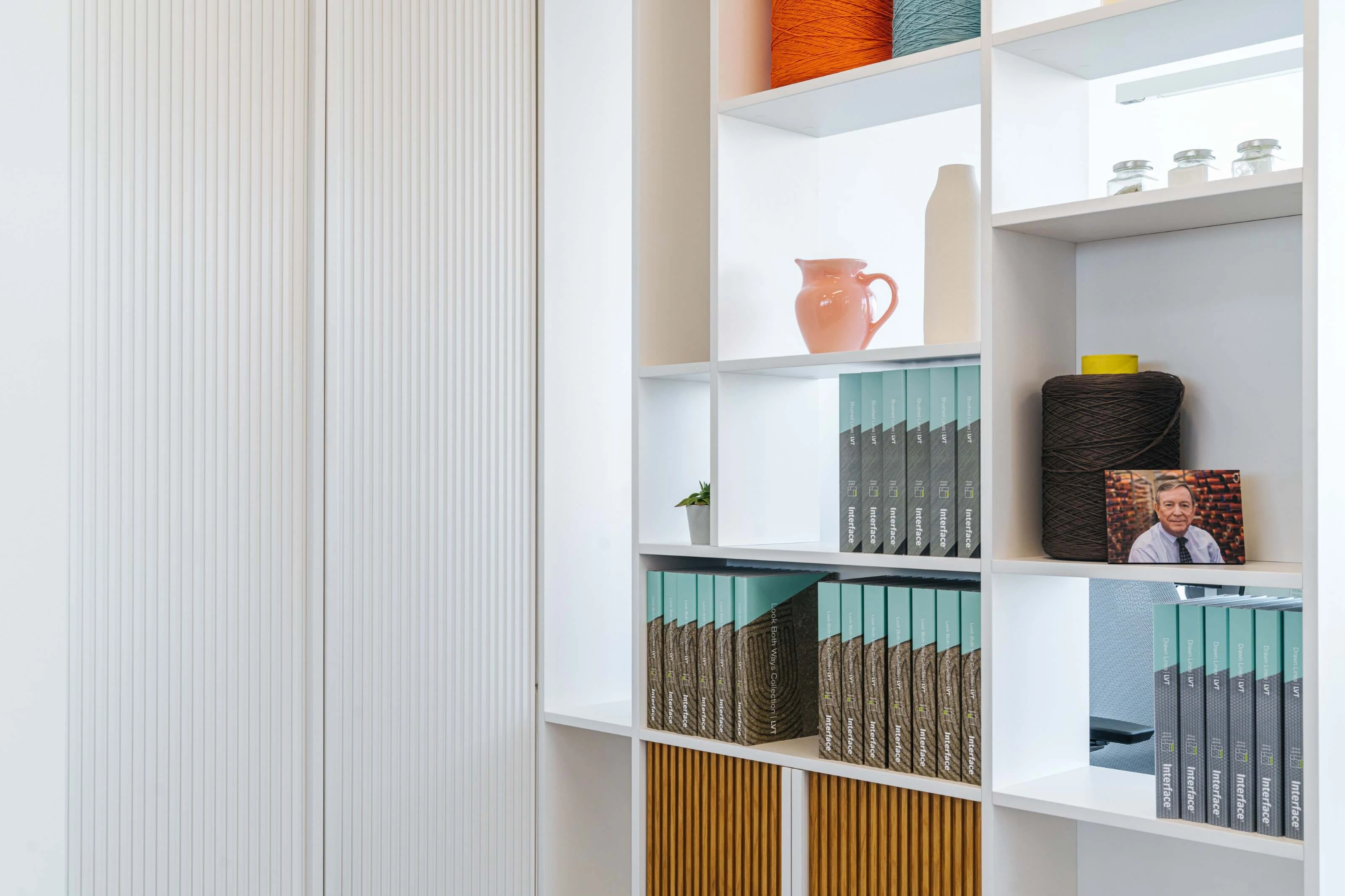 Поскольку офис компании одновременно должен быть шоу-румом производимой продукции, к интерьеру предъявляется ряд требований. Главное, это концентрация внимания на полу и текстильных изделиях и достаточная нейтральность остальных частей интерьера. А также удобное хранение и демонстрация продукции в образцах и примеры применения в самом интерьере. У компании есть бренд-бук, который необходимо было учесть при проектировании интерьера.