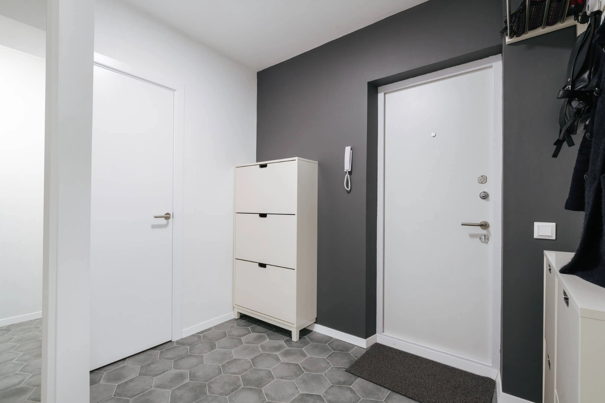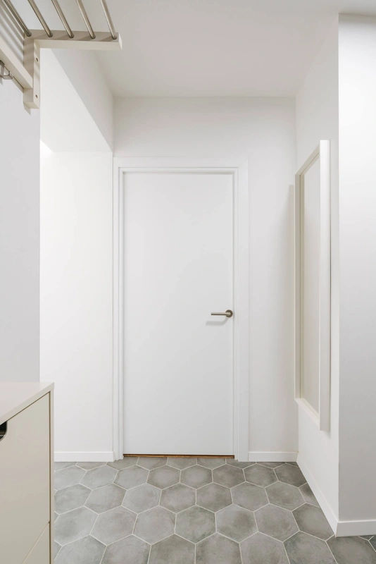 Спроектировали простое и минималистичное жилище для супружеской пары. Использованы простые и доступные материалы и нейтральная монохромная палитра.